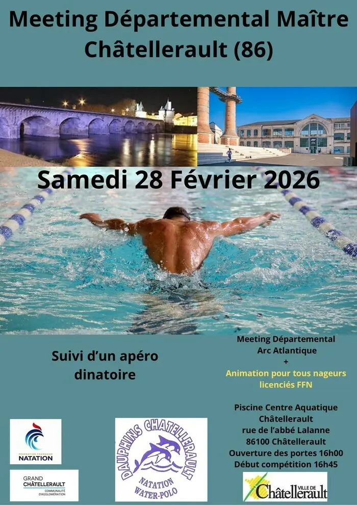 Le club des Dauphins de Châtellerault organise une compétition de natation pour les adultes de 20 ans à 99 ans. Les participants doivent être licenciés à la FFN.
