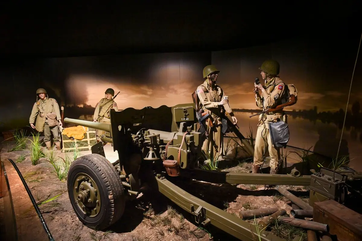 A travers ses 5 bâtiments à la scénographie moderne, interactive et spectaculaire, le musée vous guide sur les pas des parachutistes américains du Jour-J. Vous découvrirez tout d'abord le contexte dans lequel sont intervenus les parachutistes, à savoir l'Occupation allemande, ses restrictions et ses règles, l'atmosphère anxiogène de la France de l'époque, et ce au travers d'une nouvelle exposition permanente ouverte en 2024. Ensuite, c'est le grand bond au-dessus de l'Atlantique: comment ont été fondées les troupes aéroportées américaines, et comment se sont déroulés leurs premiers combats en Afrique du Nord et en Europe? L'occasion d'admirer un authentique avion C-47 qui a largué des soldats de la 101è division aéroportée au-dessus de Sainte-Mère-Eglise, et de tout apprendre de l'organisation du Jour-J. Après être passé à l'intérieur d'un avion C-47 donnant la sensation de sauter pour atterrir au village, les âpres et difficiles combats qui eurent lieu au cours des premiers jours et semaines qui suivirent le 6 juin reprennent vie au sein du bâtiment Neptune. Vous aurez la sensation de vous perdre dans le bocage normand, qui ralentit les opérations alliées en Normandie et vit des dizaines de milliers de personnes périr au nom de la liberté, au cours de la bataille pour La Fière et la Bataille des Haies notamment.