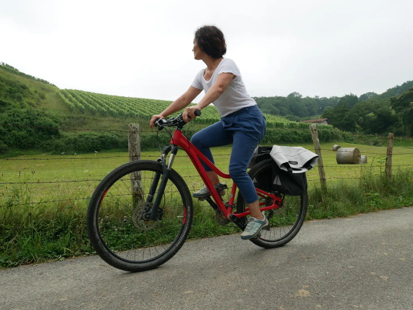 La vallée de Baïgorry recèle d’innombrables petites routes qu’il fait bon de découvrir. L’esthétisme des paysages traversés est à la hauteur des efforts à fournir pour passer les brèves mais franches montées. Le plat ne dure ici jamais bien longtemps mais l’effort est toujours récompensé. Les villages rencontrés sont des belvédères de choix qu’il faut savoir apprécier lors de pauses contemplatives. Qu’il soit des vignes, des prairies ou des forêts, le vert est omniprésent avec comme un rappel à l’ikurriña, le rouge de la terre et le blanc des maisons. Afin d’apprécier cette immersion entre nature, culture et histoire, un vélo à assistance électrique permettra de passer sans encombre les quelques difficultés. Au terme du circuit, les berges de la Nive des Aldudes offrent un lieu bucolique à souhait pour déguster quelques tranches de jambon « Kintoa » et de fromage « Ossau-Iraty".