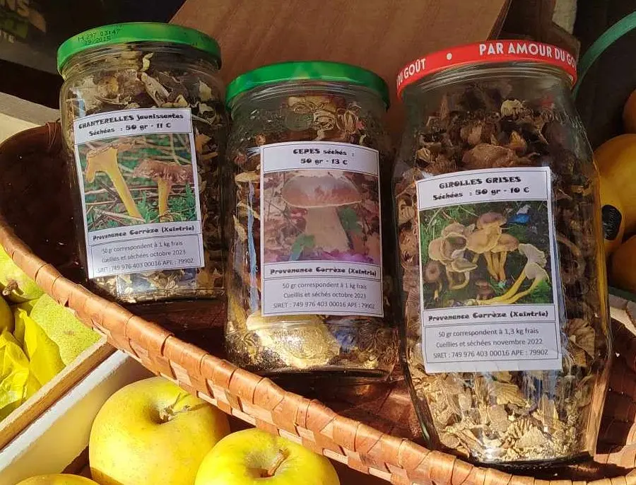 Son processus de production repose sur plusieurs étapes minutieuses : la collecte ou le rachat de champignons auprès de producteurs locaux, le séchage soigneux grâce à un déshydrateur, et enfin le conditionnement dans des bocaux en verre pour garantir une conservation optimale. Ce circuit court et respectueux des savoir-faire locaux reflète son attachement au terroir corrézien et à la qualité des produits qu’il propose.