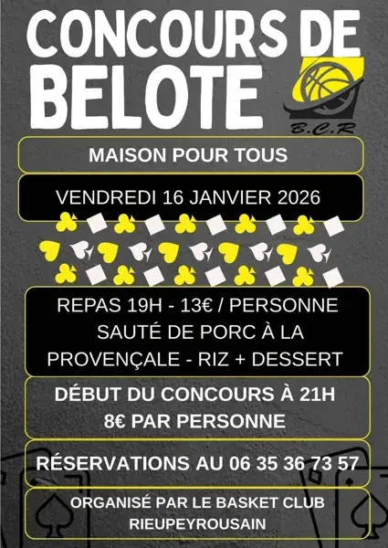Le Basket Club Rieupeyrousain vous invite à participer au challenge belote pendant l'hiver.