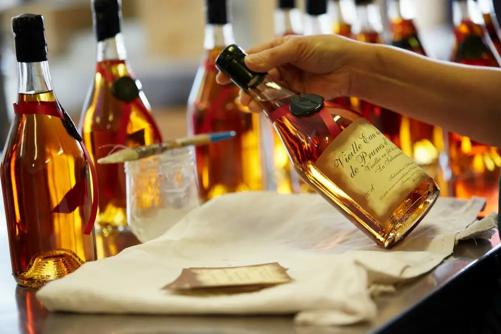 Après avoir observé les fûts de chêne dans lesquels vieillissent les eaux-de-vie, dégustez une sélection de liqueurs, apéritifs et fruits à l'eau-de-vie dans le magasin de la distillerie la Salamandre.