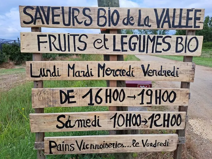 Notre ferme est en bio depuis 35 ans. Elle produit une gamme très variée de légumes et de fruits. Elle propose aussi du pain au levain, des viennoiseries, des jus de pommes et des pizzas, tout en bio !