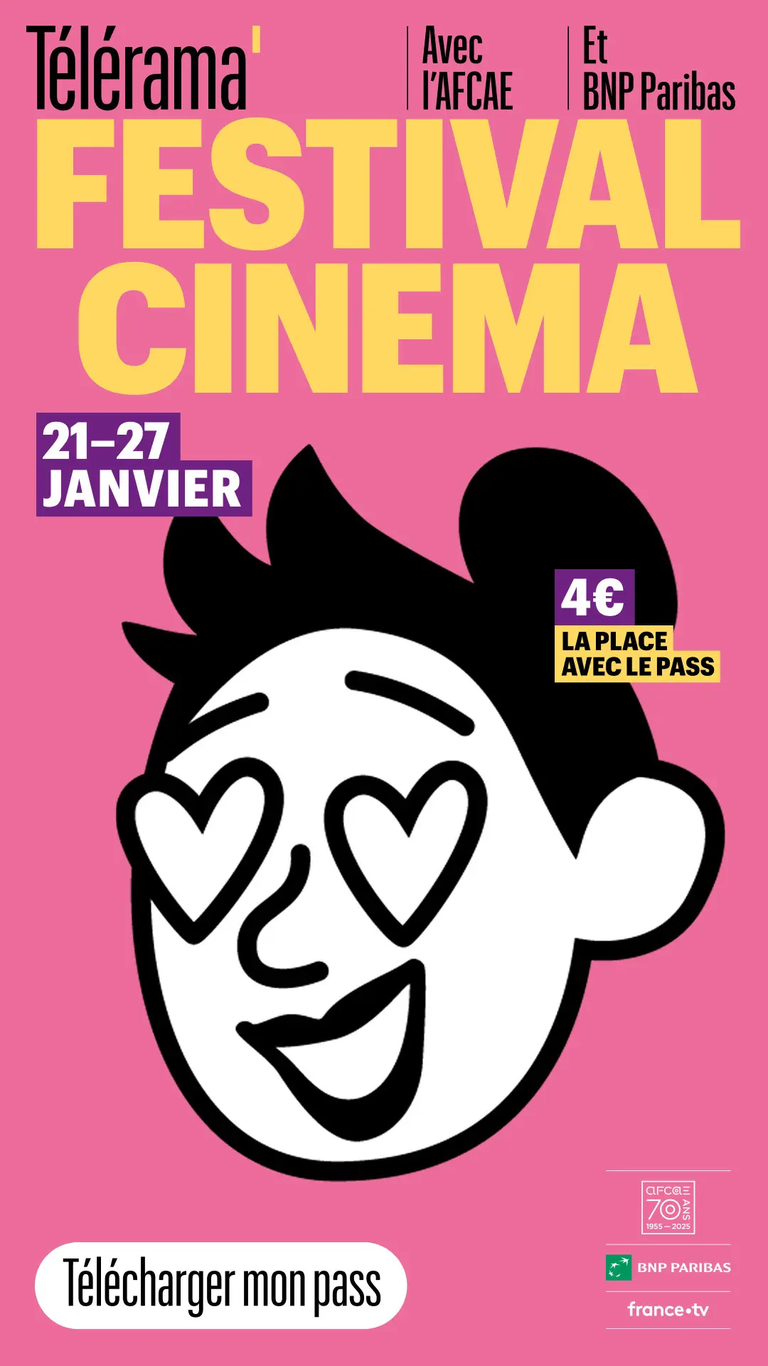 4€ la place avec le pass Télérama – (vente des places avec le pass Télérama uniquement à l'accueil du cinéma)
