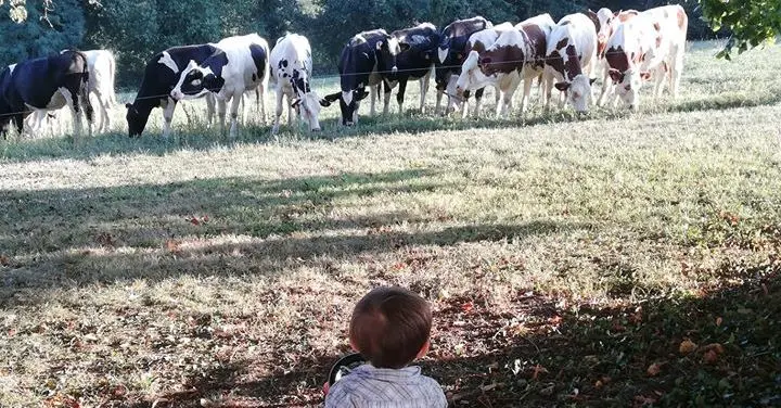 Ferme laitière en traite robotisée. Vente de viande de bœuf en colis sur commande. Vente de saucisson pur bœuf et conserves de bœuf. bovins lait de races Prim'Holstein et Montbéliarde. Production du lait. Explication de la traite robotisée. Lecture de paysage. La viande de bœuf, le cycle de l'animal.