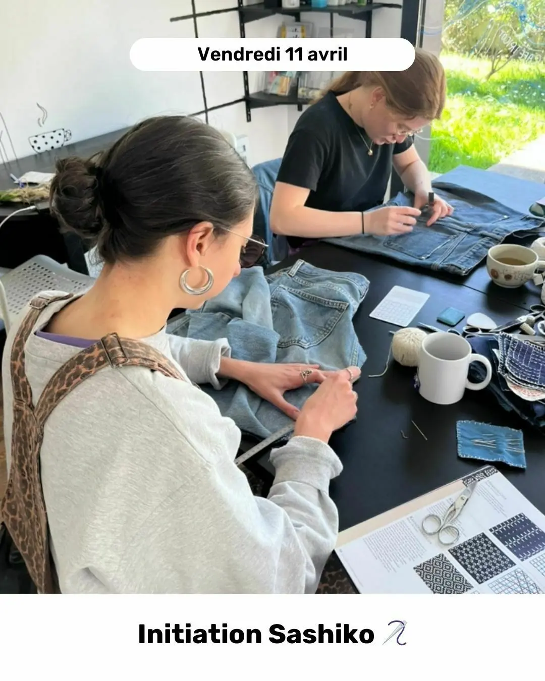 Atelier à la découverte de la broderie d'inspiration Sashiko avec la réalisation d'un motif, mais si vous souhaitez réparer un vêtement tissé (jean par exemple), n'hésitez pas à l'apporter !