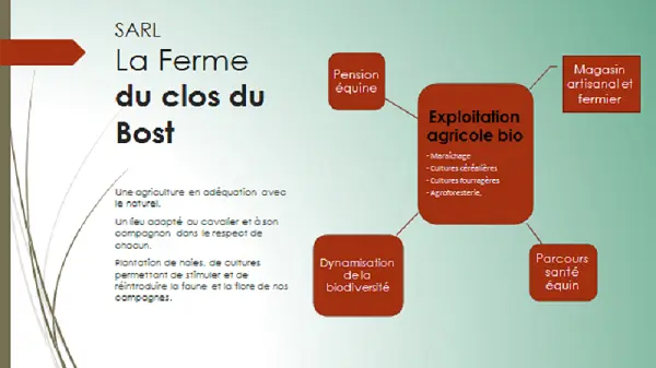 Maraîchage (vente de panier et vente directe plus point relais à la MARS de Saint-Pardoux) La SARL va développer la terre en valorisant la biodiversité et des méthodes plus respectueuse de l’environnement. S’adapter aux contraintes modernes en ayant un minimum d’impact sur notre domaine. Favoriser le partenariat avec les exploitations voisines. 57 hectares vont être exploités, 25 hectares de terres agricoles, 25 hectares de taillis et forêt et 2 étangs pour 2 hectares. 1 hectares est consacré au maraîchage et nous commençons à créer un verger. Nous avons un point Relay à la MARS de Saint-Pardoux.