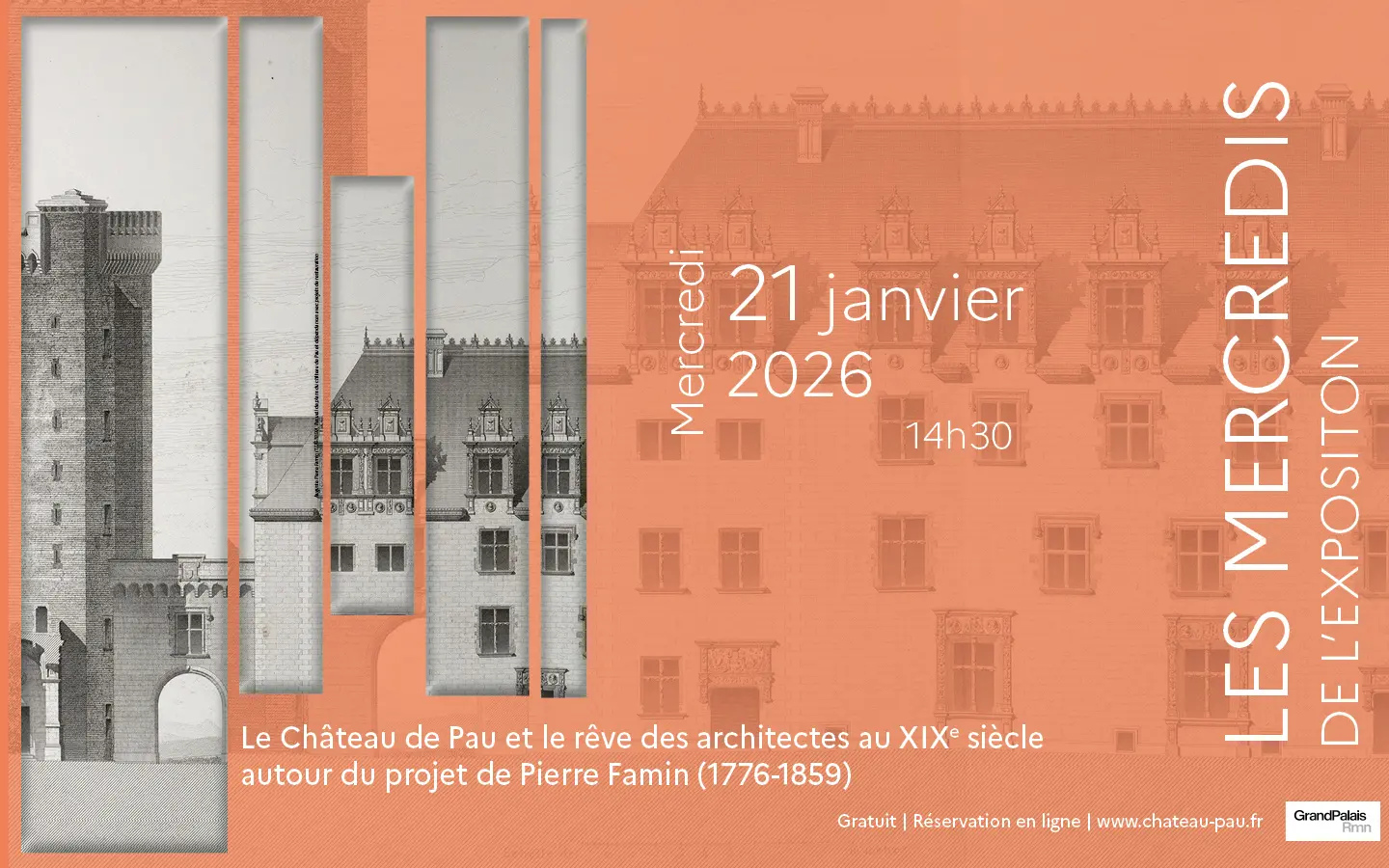 Une visite approfondie (avec les commissaire de l’exposition) de l’exposition « Projets et merveilles » autour des essais, des abandons et des réalisations de restauration par le prisme des dessins des architectes, en particulier le Recueil des plans du château réalisé en 1824 par Pierre Famin.