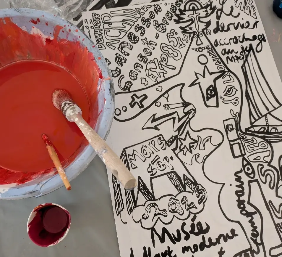 A l'invitation des Amis du MASC, Corentin Canesson et Michaela Sanson-Bran ont imaginé des modèles d'affiches en noir et blanc pour cette dernière exposition du musée. De nombreux visiteurs s'en sont saisi pour les rehausser de motifs ou de traits de couleur de leur cru. A votre tour, venez personnaliser votre affiche en participant au grand atelier installé le temps d'une nuit sous la croisée.