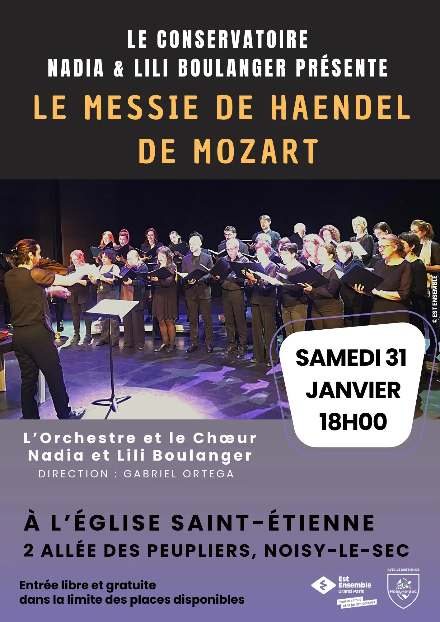 L'orchestre et le Chœur Nadia & Lili Boulager ainsi que la classe de chant lyrique du conservatoire, en partenariat avec les ensembles du conservatoire d'Ivry-sur-Seine, vous invitent à écouter Le Messie de Haendel revisité par Mozart dans un cadre empreint de sacré.