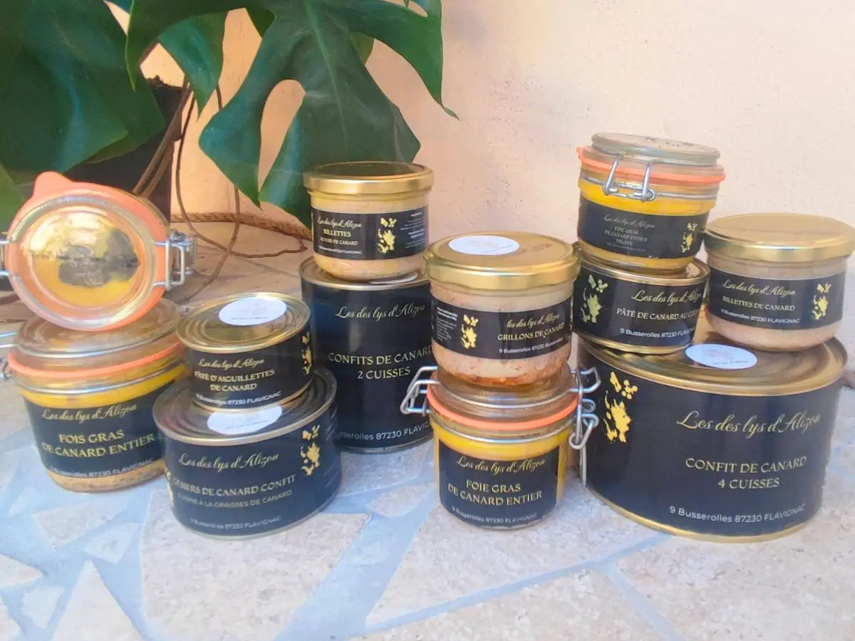 Caroline et Sylvain, passionnés par leur métier d’agriculteurs et éleveurs de canards à Flavignac, font vivre Les Lys d’Alizon, une ferme où authenticité et saveurs locales sont à l’honneur. Ils y proposent, en vente directe, de délicieux produits issus de leur élevage en conserves et produits frais (foie gras, rillettes, pâtés, confits, magret sécher, aiguillettes et autres spécialités). Animés par l’envie de partager leur savoir-faire et de tisser des liens, ils préparent également l’ouverture d’un gîte accessible à tous et de visites à la ferme pour faire découvrir, dans un cadre convivial, les richesses de leur terroir.