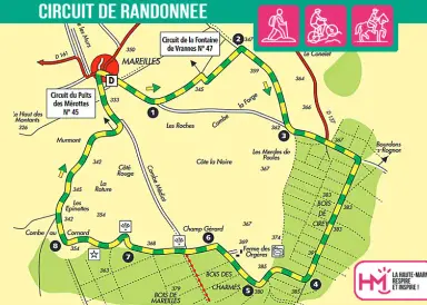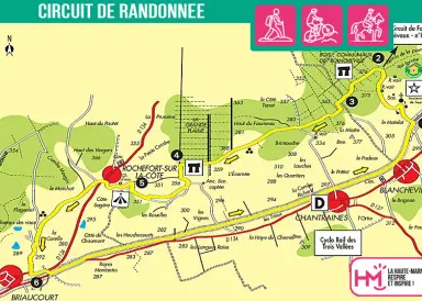 Ce circuit au départ de Marault et de son château construit dans un écrin de verdure, sur un îlot entouré de douves, vous mènera sur le circuit Marie Calvès. Vous arriverez à l'étang d'Annéville endroit de quiétude très prisé des amateurs de pêche. Différents paysages s'offrent à vous : bois, prairie, ruisseau des Vervelles. A la Croix St Roch, une aire de pique-nique reste à votre disposition. Une partie du circuit vous guidera jusqu'à Marault. A gauche, le circuit vous permet de rejoindre Bologne puis Roôcourt la Côte.