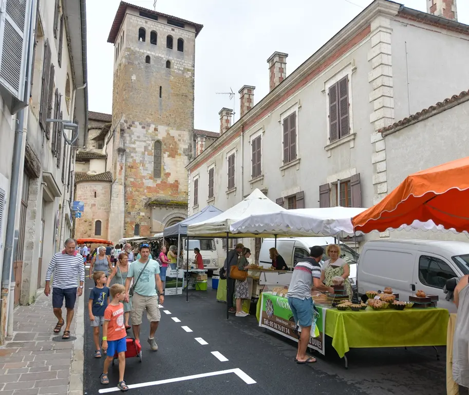 Tous les samedis matins, marché traditionnel place et rue du Tribunal, avec des vendeurs de vêtements, chaussures, légumes, plantes et fleurs… Dans les halles et tout autour, s’installent des commerçants locaux : fromagers, charcutiers, boucher, poissonnier, pâtissiers, et de petits producteurs fermiers d’oie et canard gras, poulets, primeurs, fromages, porc, miel... Sans oublier la brasserie locale et son coin détente, ainsi que des groupes de musiciens aux beaux jours.