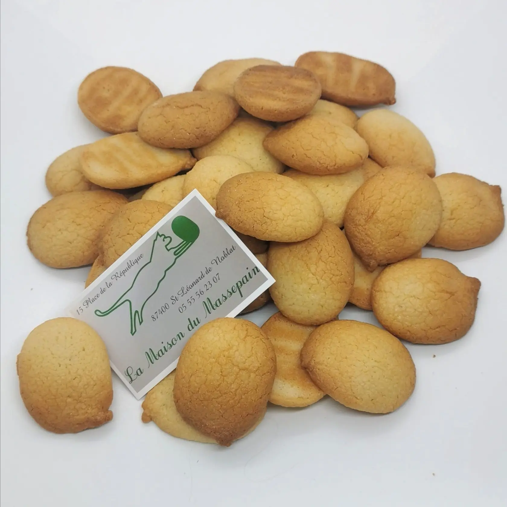 Véritable spécialité de Saint-Léonard de Noblat, découvrez le Massepain décliné façon "la Maison du Massepain". Le massepain, ce sont trois ingrédients qui, mélangés, donnent de fabuleuses galettes dorées, craquantes à l'extérieur, moelleuses à l'intérieur et fondantes sur la langue ! Sa spécificité : travailler les blancs en neige avant d'y incorporer la poudre d'amande et le sucre glace. Un véritable délice à retrouver en pâtisserie !