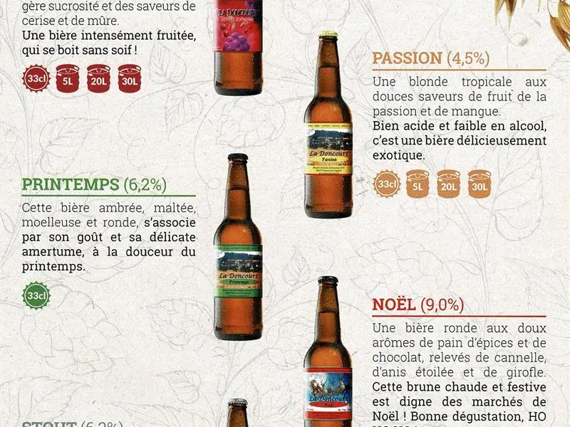 Notre brasserie familiale se situe dans le petit village de Doncourt les Longuyon, à deux pas de la frontière belge et de son savoir brassicole Notre maître brasseur, Nicolas Van Dyck, applique les méthodes traditionnelles belges pour le brassage de nos bières. Toutes nos bières sont obtenues à partir de produits naturels tels que le malt d’orge (cultivé à 5km), le malt de froment, le houblon, l’eau, des levures et parfois des épices. La brasserie propose des visites, sur réservation, les dimanches à partir de 5 personnes. Tarif : 10€/p avec dégustation de 2 bières.