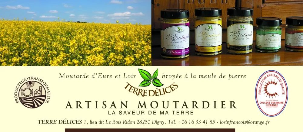 Venez tester les produits du terroir eurélien, mettez au défi votre palet à travers une dégustation d'une moutarde "Terres Délices" issue de mode de production traditionnelle à la meule de pierre, elle n'attends plus que vous.