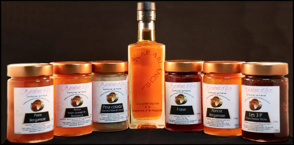 Découvrez la confiture artisanale landaise cuite au chaudron en cuivre d'Isabelle Amistadi. Oh palais d’Isa vous propose des confitures originales et variées, confectionnées avec des fruits frais français de petits producteurs locaux des Landes et du Gers principalement. 3 ème au championnat du monde 2021 Des produits récompensés : les confitures d’Oh palais d’Isa se sont notamment illustrées plusieurs fois au salon de l’agriculture. En manque d’inspiration pour vos évènements ? Oh palais d’Isa vous propose aussi (sur commande) la personnalisation des étiquettes pour vos : mariages, baptêmes, anniversaires, etc… Une idée cadeau Les confitures d’Oh palais d’Isa sont aussi une idée de cadeau original et unique.