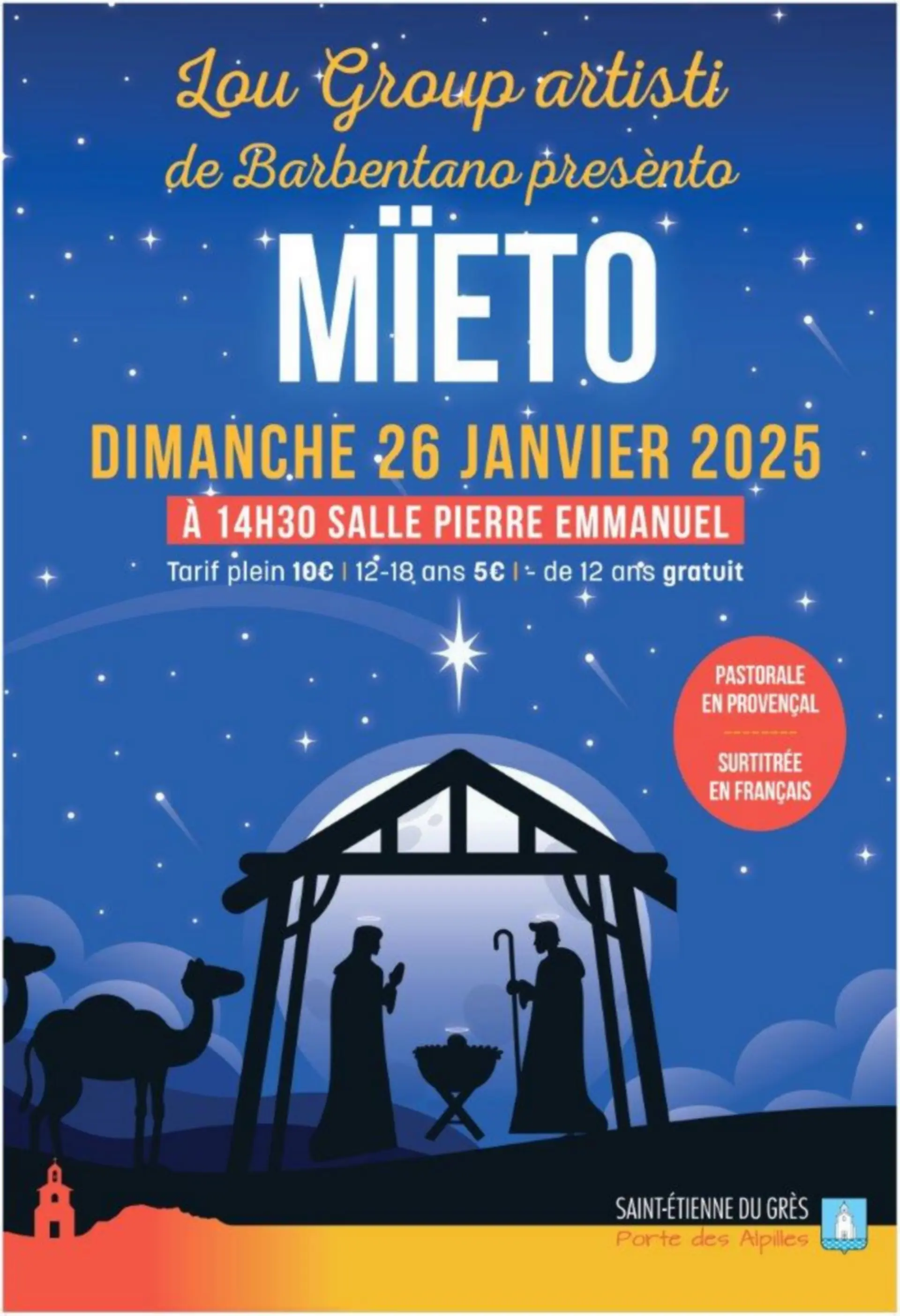 Le Groupe artistique de Barbentane propose "Le Mystère de la naissance de Notre Seigneur Jésus Christ" plus connu sous le nom de "Pastorale Maurel", la plus renommée en Provence, écrite en 1844 par Antoine Maurel à Marseille.