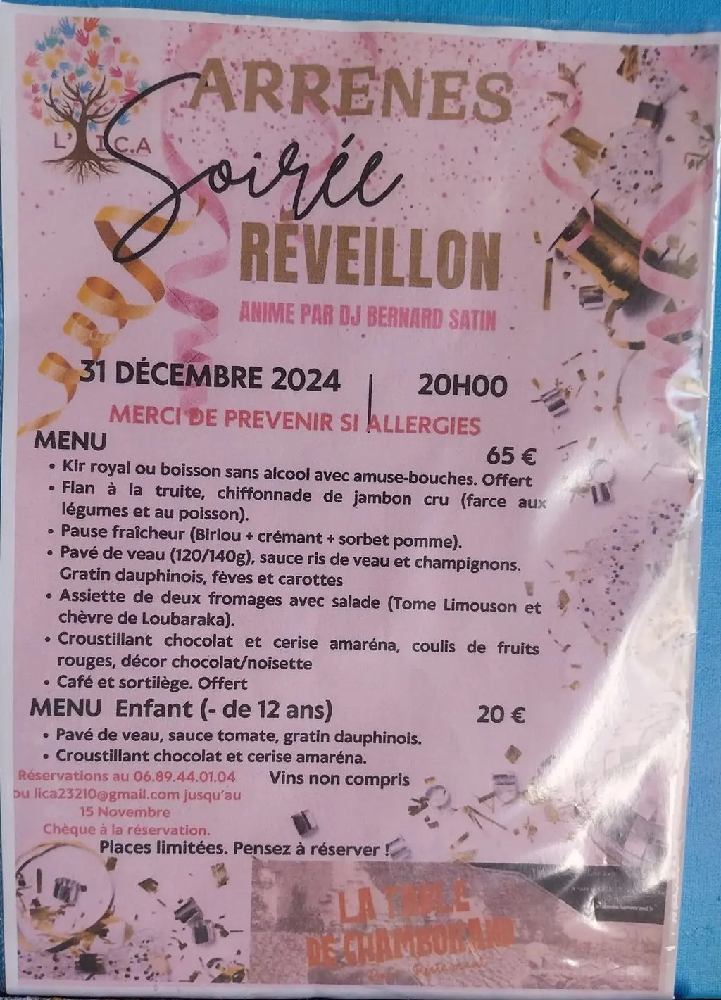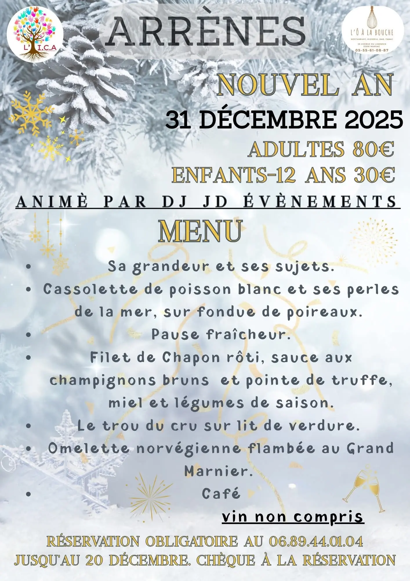 Réservation obligatoire au 06 89 44 01 04 jusqu'au 20 Décembre, chèque à la réservation.