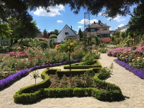 Dessinée par le jardinier en chef de l’Orangerie, la Roseraie a été créée entre 1926 et 1929 par un groupe de cheminots amoureux des roses. Sur une superficie de 30 ares s’épanouissent plus de 4 000 rosiers de 390 variétés différentes. On y retrouve toutes les formes possibles : buissons, arbustes, grimpants, sarmenteux, miniatures. Placée sous la protection de l'Association des Amis des Roses, elle est entretenue par des bénévoles, amoureux des fleurs. Vous rencontrerez toujours un jardinier dans les allées pour répondre à vos questions. Le jardin est agrémenté de fontaines et bassins avec plantes aquatiques et poissons. Bancs et tonnelles permettent de se reposer à l’ombre des rosiers. Un tableau idyllique et romantique à souhait !