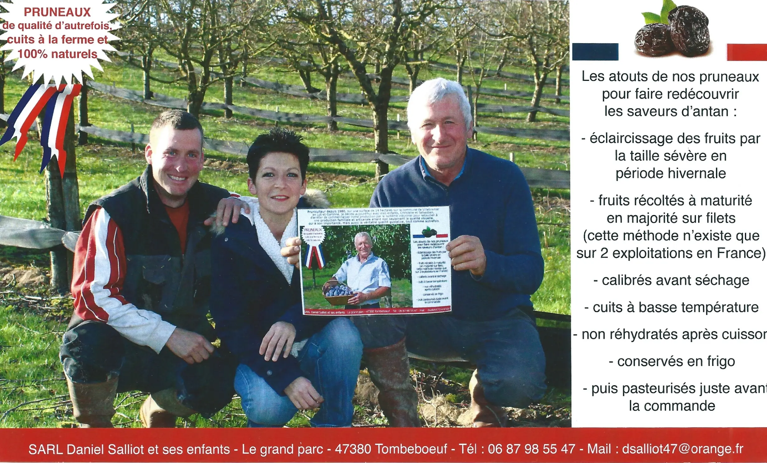 Pruniculteur depuis 1980, Daniel SALLIOT a décidé d'arrêter la production industrielle pour revenir à une production artisanale. Il travaille aujourd'hui avec ses enfants et veille à la qualité de ses produits mi-cuits et sans conservateur.