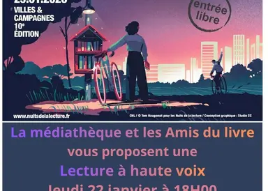 A l’occasion des Nuits de la lecture, préparez vos plus belles chaussettes-chaussons et venez en famille à la médiathèque, pour une petite soirée conviviale émaillée d’histoires, de chansons et de jeux. Une première partie jusqu’à 19H30 sous forme d’heure du conte, prolongement jusque 20H30 pour les plus réveillés avec des jeux de société.