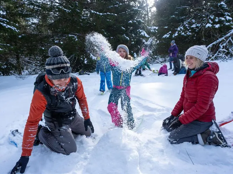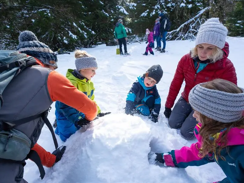 Pistez les traces d’animaux dans la neige, jouez ensemble dans la forêt, fabriquez un abri, émerveillez-vous en famille !