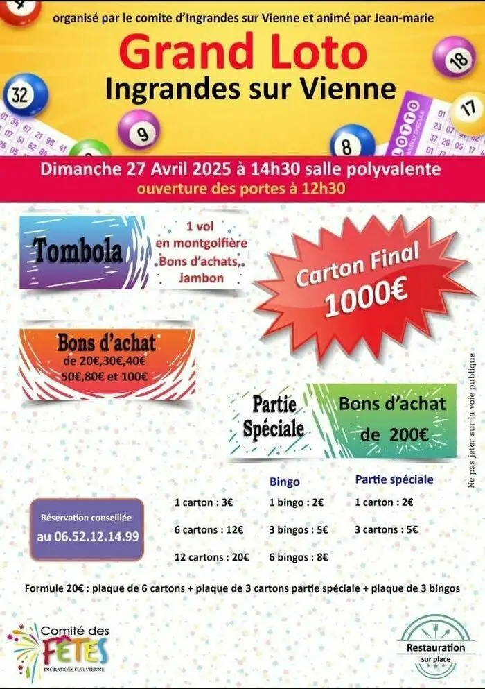 Venez vous divertir en essayant de gagner de superbes lots mis en jeu par le Comité des Fêtes d'Ingrandes-Sur-Vienne.