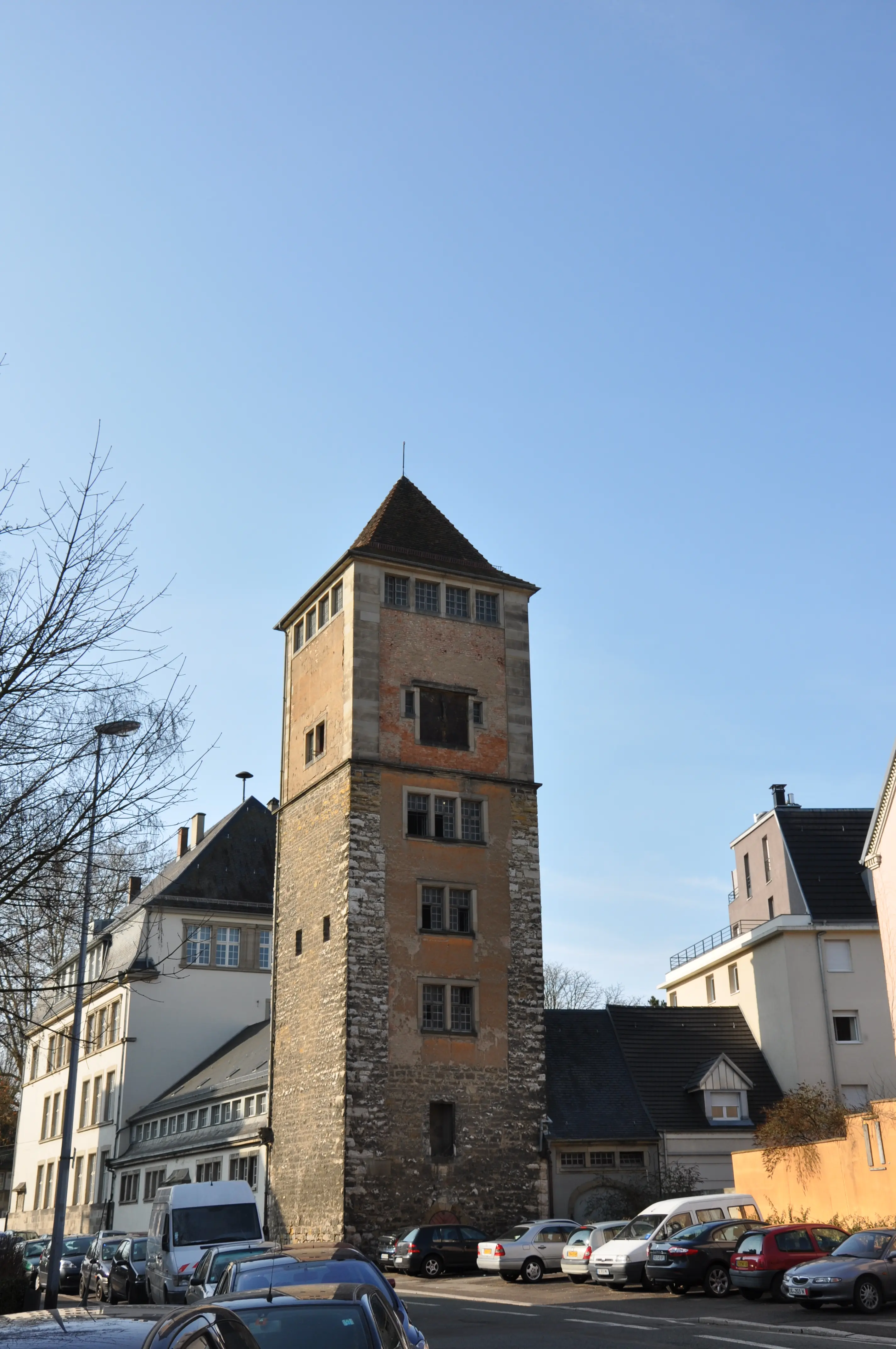 La tour tirerait son nom de la fonction de prison pour les personnes accusées de sorcellerie qu’elle aurait eu au 15ème. Construite au 13ème, faisant partie du château épiscopal, elle est ensuite intégrée aux fortifications de la ville et communique avec le chemin de ronde. Au 19ème, la Ville en fait des logements ouvriers. Une galerie et un escalier en bois lui sont accolés pour l’accès aux étages. Ravagée par un incendie en 1904, elle est restaurée et surélevée en 1906, mais son aspect actuel ne ressemble pas à la tour initiale de trois étages. L'ancienne porte de la prison, couverte de graffitis des prisonniers, est exposée au Musée Historique.