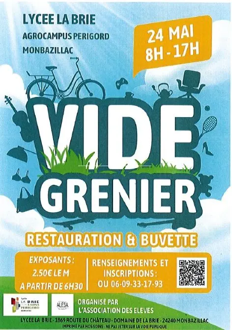 L'association des élèves du Lycée La Brie organise un vide grenier sur le site du lycée. Petite restauration sur place avec animations pour les plus jeunes : chamboultou, pêche à la ligne ... .