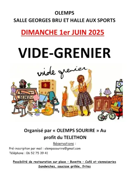 L’association Olemps Sourire propose son vide grenier annuel le dimanche 1er juin, organisé au profit du téléthon.