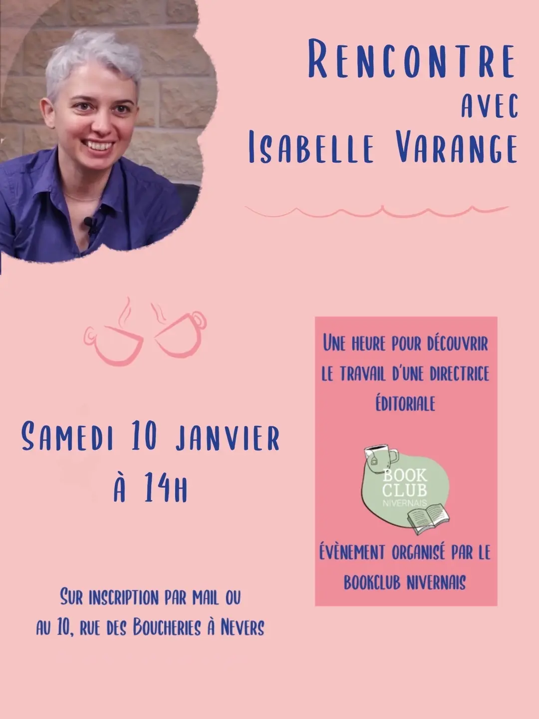 Le samedi 10 janvier, le Bookclub nivernais reçoit Isabelle Varange, éditrice indépendante et traductrice à la Librairie-café Les Audacieuses.