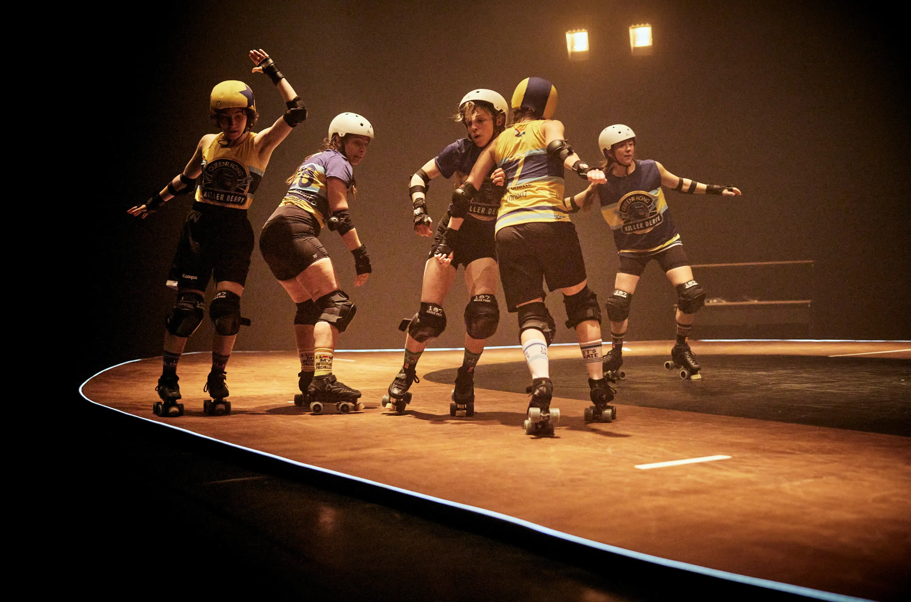 Le roller derby est un sport de contact féminin et inclusif, aussi physique que tactique, joué sur une piste ovale, où 2 équipes s'affrontent sur des rollers dans le but de faire passer une joueuse à travers le peloton adverse permettant de marquer des points. Pour Valia Beauvieux et Emmanuelle Hiron, c’est aussi un spectacle. Cette pièce construite à partir d'histoires personnelles, interprétée par 6 femmes et personnes non binaires qui pratiquent le roller quad à haut niveau, montre comment ce sport de contact agit comme un révélateur intime pour les personnes qui le pratiquent. Tomber, se relever, tomber, s’affirmer : une performance unique, caractérisée par son intensité physique, où les membres célèbrent leurs identités avec force. Ici, un seul mot d'ordre : « Qui que tu sois, d'où que tu viennes, tu peux te redéfinir. »