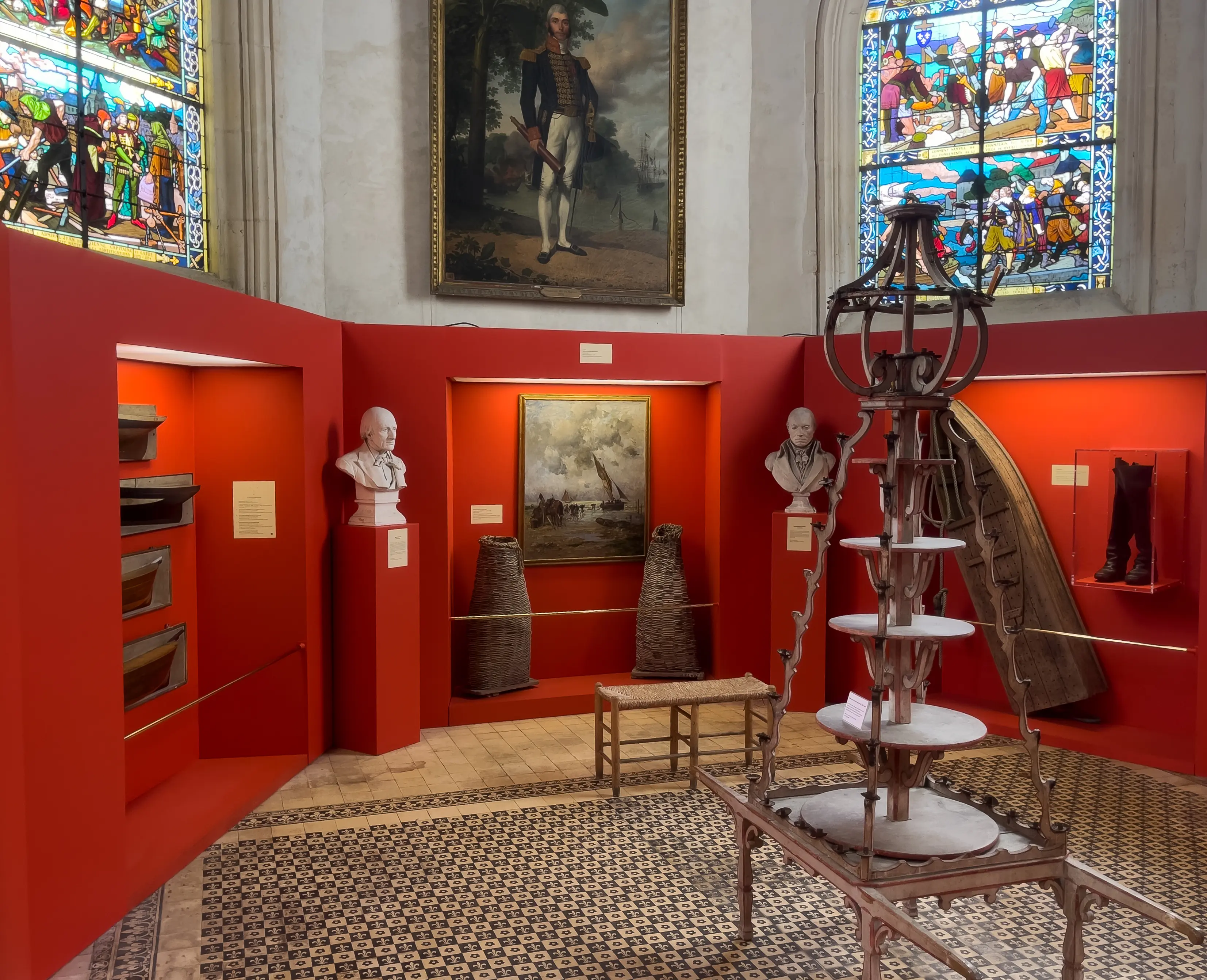 Entrez dans l’ancienne église Saint-Etienne, en bordure du Vieux Bassin qui accueille depuis 1976 le musée de la marine. Les maquettes, gravures, et objets exposés témoignent des activités des gens de mer et de la société honfleuraise aux XVIIIè et XIXè siècles : la pêche, les constructions navales, le grand commerce, l’artisanat populaire lié à la mer…
