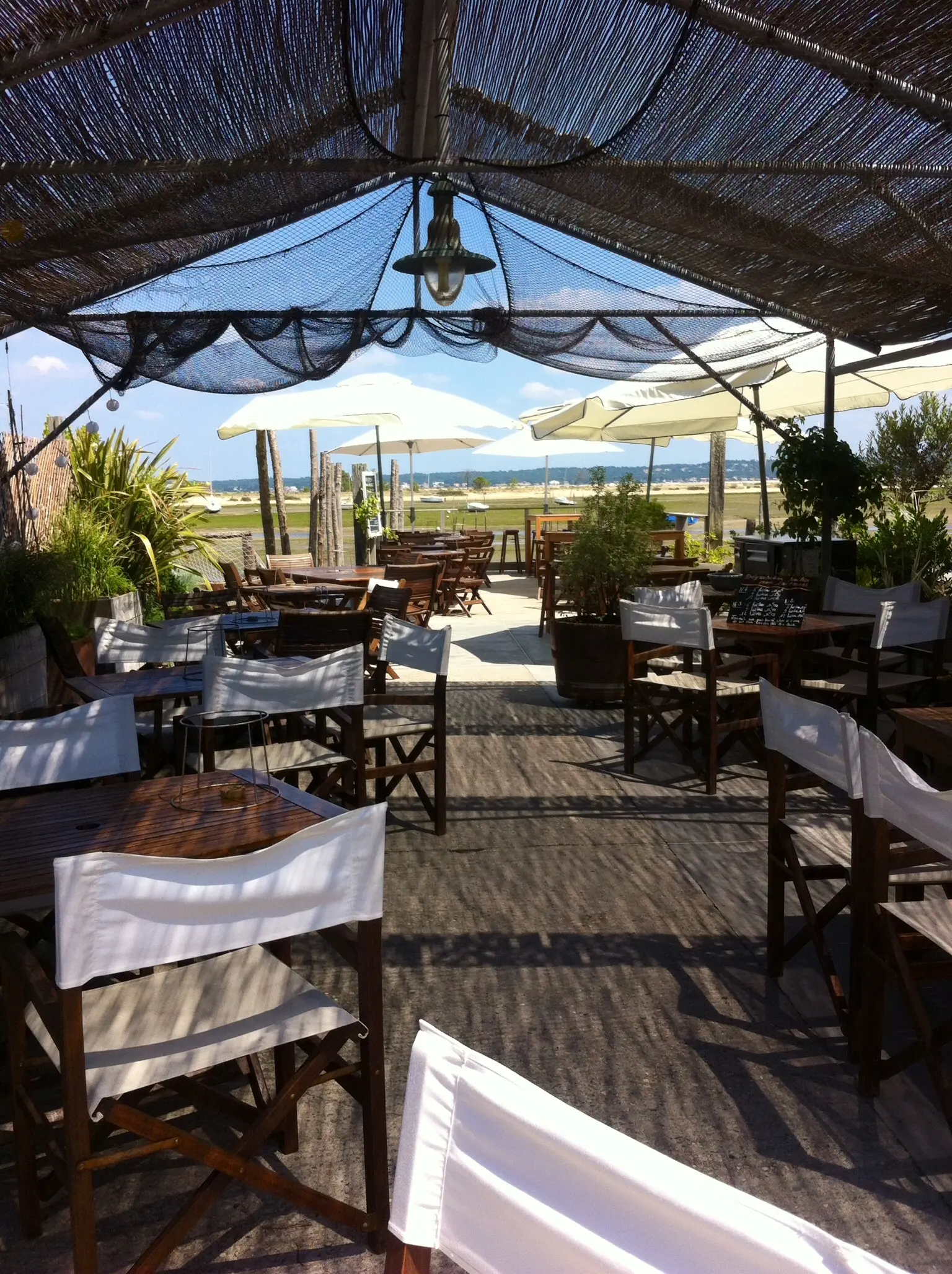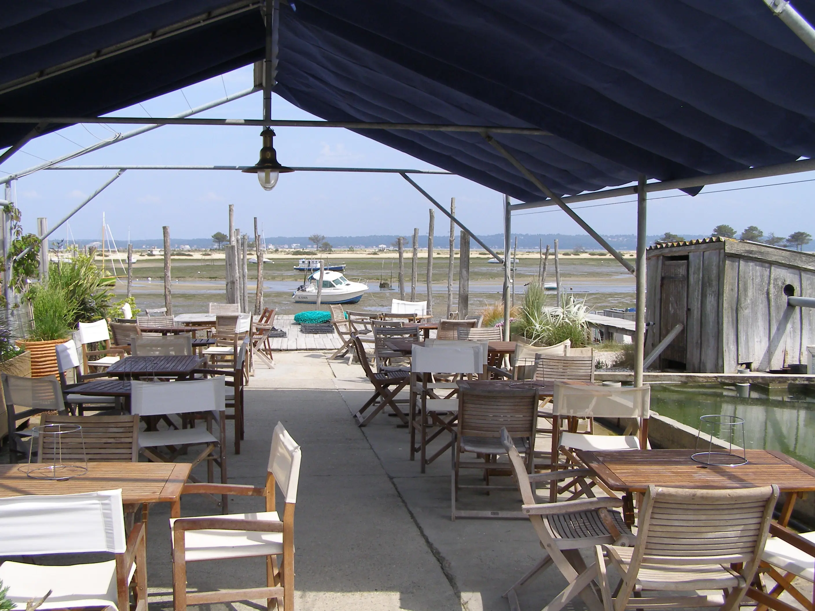 Le décor est magnifique, vous êtes dans le quartier des pêcheurs au Cap Ferret, devant la Conche du Mimbeau, face à la grande dune du Pilat. Les alentours ne sont que plages, forêts de pins et cabanes pittoresques. Le dépaysement est total pour un moment en famille ou entre amis, autour d'une table de dégustationns.