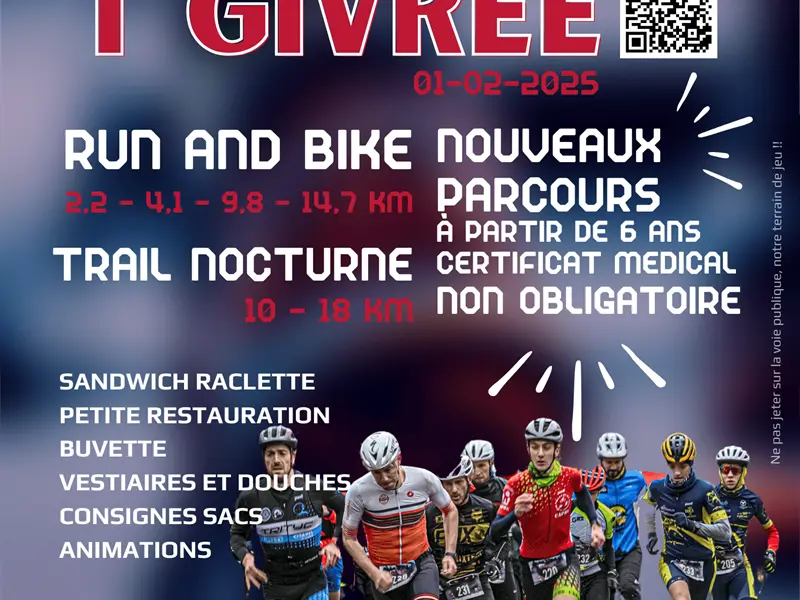 La T’Givrée propose des parcours "Run and Bike" et des trails nocturnes. Petite restauration, buvette et animations. Inscriptions : https://gotiming.fr/evenement/la-t-givree/