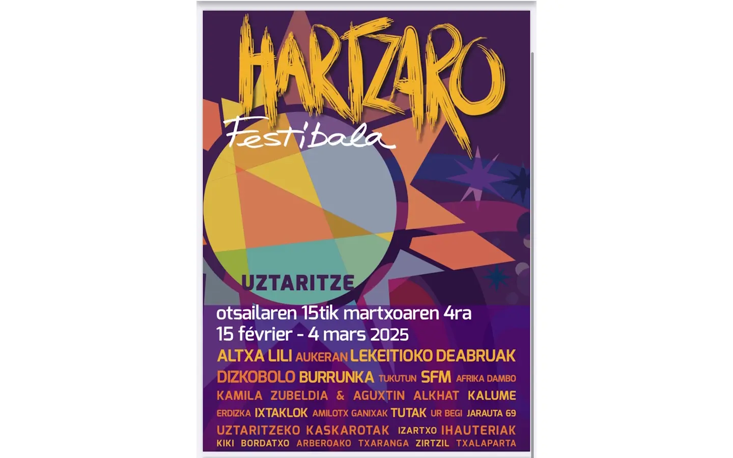 Événement emblématique des festivités hivernales au Pays basque. Quartiers Hiribehere, Zokorrondo, Bourg. 8h : Kaskarotak etxez etxe. 10h : concours gastronomique Txilindron sur inscription. 11h30 : traditionnel rassemblement des groupes de Kaskarot devant l'église. Salle Latsa, 13h30 : repas de carnaval animé par le groupe Jarauta 69 sur inscription. 18h : Arberoako txaranga. 19h : Soirée animée par Kalume.