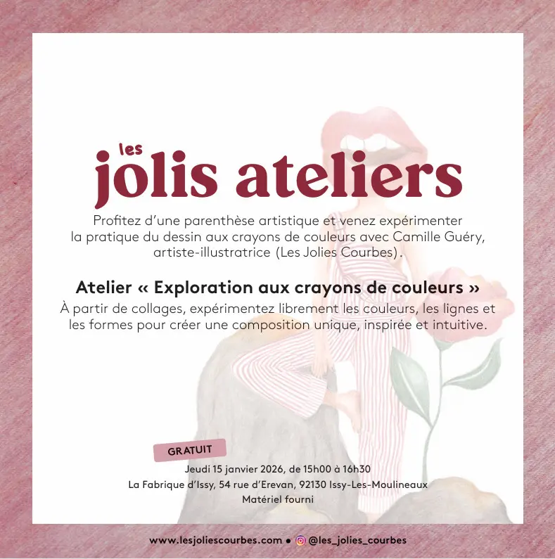 Camille Guéry est directrice artistique et illustratrice freelance. En 2023, elle fonde Les Jolies Courbes, sa marque d'illustrations féminines à la fois tendres, puissantes et décalées. Son travail mêle dessin digital et crayons de couleur, dans un style sensuel et onirique. Elle s'inspire des images codifiées des magazines féminins et détourne ces représentations lisses de la « perfection » pour en faire des compositions surréalistes, joyeuses, parfois absurdes. Sans visages, les femmes deviennent des symboles : libres et mystérieuses. La flore est omniprésente et orne les corps avec élégance, amplifie la douce force des femmes. Retrouvez là sur Instagram et sur son site internet !