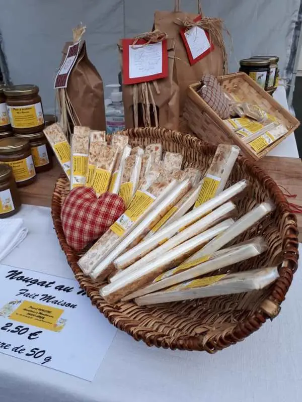 La ferme produits différents miels locaux : printemps, acacia, forêt et toutes fleurs d'été. Vous y trouverez aussi de délicieux produits fabriqués sur place avec le miel de la ferme : nougat, pain d'épices et pâte à tartiner miel noisette ! Productions de la ferme : miels de printemps, acacia, forêt et toutes fleurs d'été.