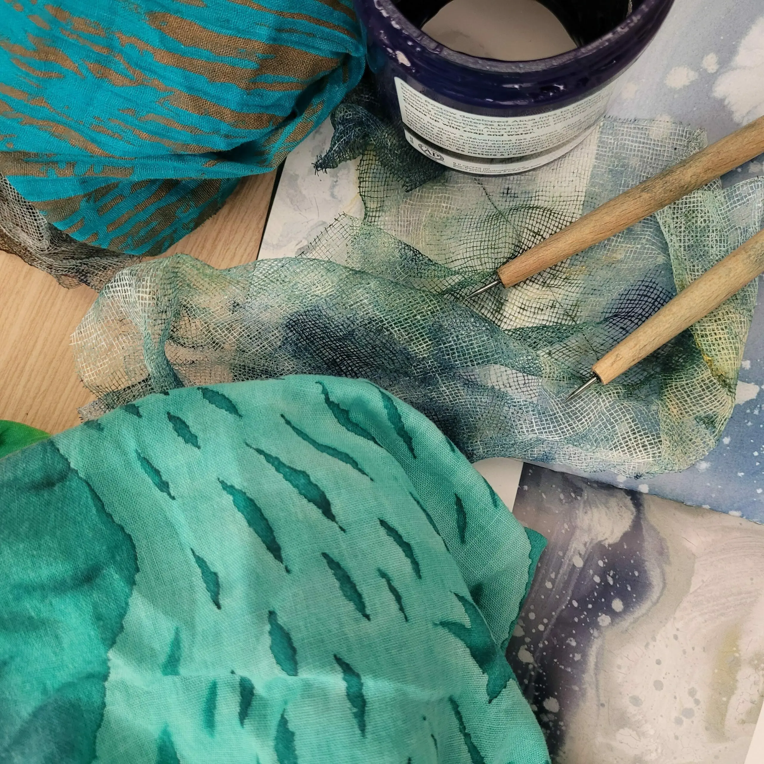 Un samedi créatif pour expérimenter en gravure sur tissu la fluidité et la transparence de l’eau.