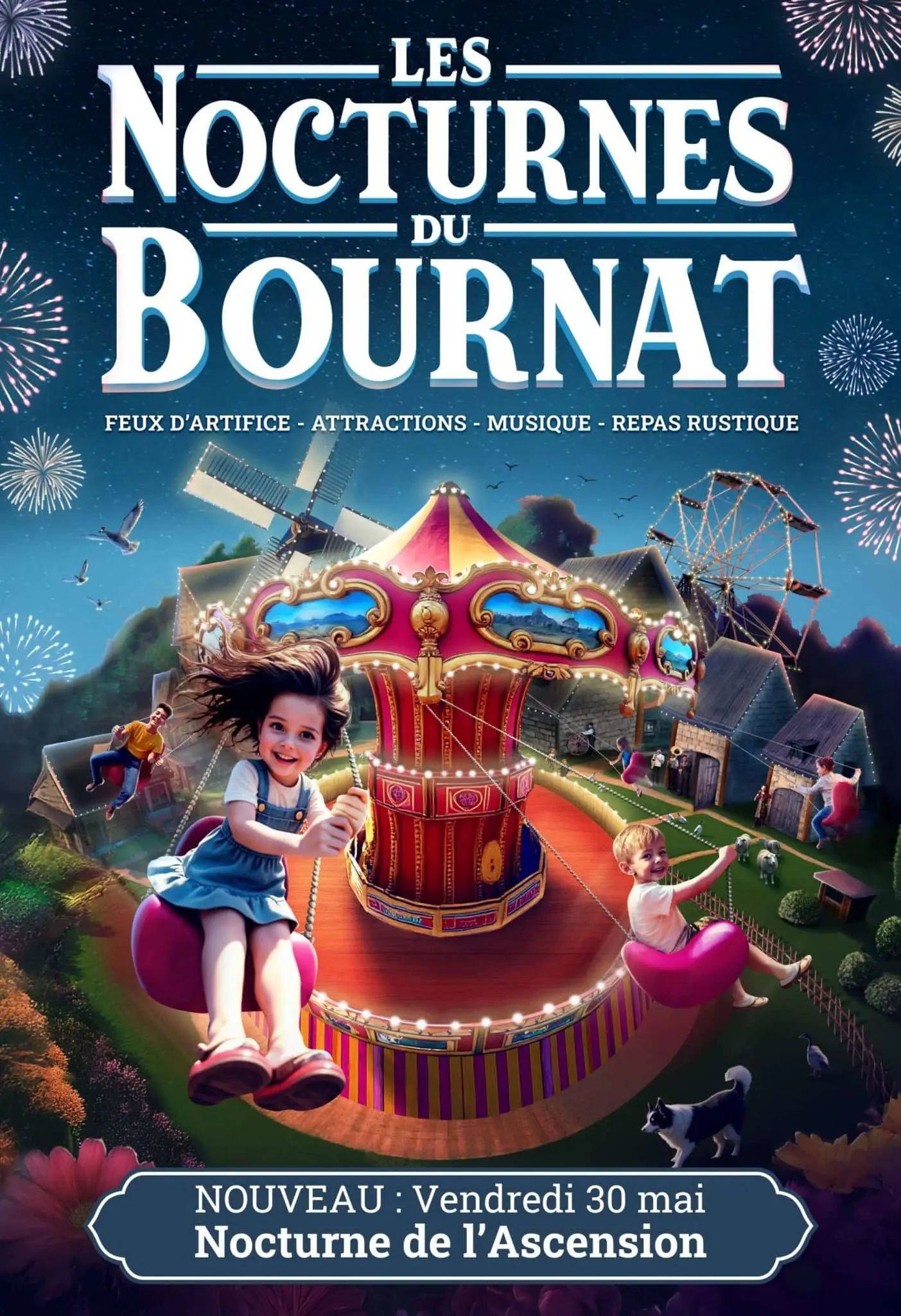 Le 30 mai, le Bournat ouvre exceptionnellement ses portes jusque la nuit tombée. Une occasion précieuse de découvrir le parc sous une lumière nouvelle, douce, chaleureuse, féérique. Le jour laisse place à une atmosphère unique, où les lanternes s’allument et les manèges tournent sous les étoiles. Manèges illuminés, artisans, animaux, musiques d’époque : tout l’univers du parc prend une autre dimension. Ici, pas de files d’attente interminables, pas de néons agressifs. Juste le plaisir simple de flâner, de jouer, de partager une parenthèse poétique avec ses proches.