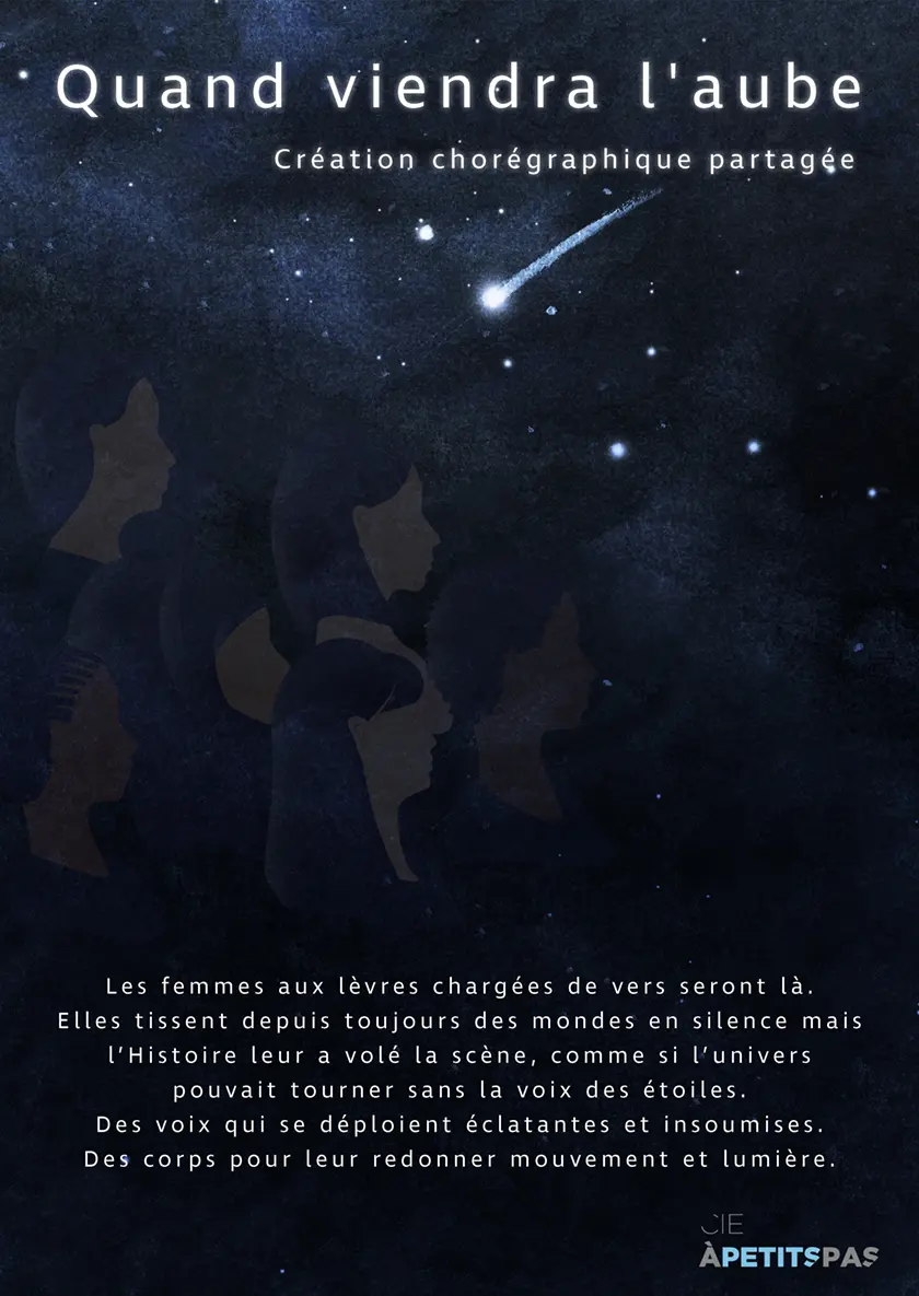 Programmation Fédération des Arts Participatifs et des Créations Partagées. Une création chorégraphique partagée avec des villeurbannais.es autour de l’univers des poétesses. La Compagnie a invité des non-danseur.ses – principalement des habitantes de Villeurbanne ainsi que des résident.es d’une résidence autonomie pour personnes âgées – à participer à une nouvelle expérience chorégraphique. Sous la direction de la chorégraphe, accompagnée de danseuses professionnelles, les participant.es ont été convié.es à explorer un univers inspiré par les poétesses. Ces femmes, souvent méconnues, n’ont pourtant cessé depuis toujours de tisser des mondes invisibles. Leurs mots sont des fils de résistance et de beauté, des voix éclatantes, insoumises, qui se déploient malgré l’ombre. Cette création partagée offre aux poétesses une nouvelle présence : des corps pour incarner leurs textes, des gestes pour amplifier leur souffle, des mouvements pour faire jaillir à nouveau leur lumière. Autre représentation à 17h Durée : 1h