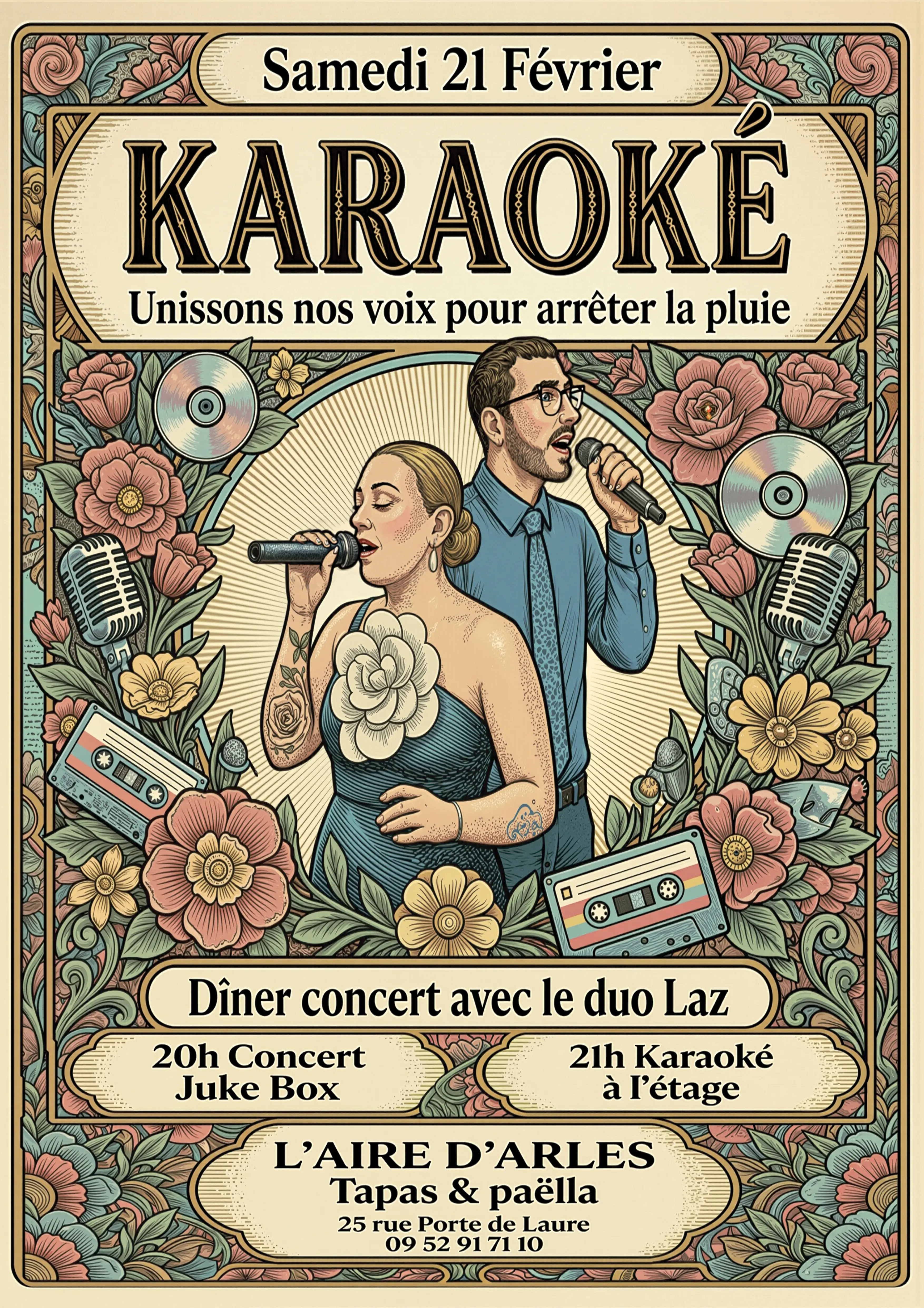 Après le dîner concert "Juke-Box" animé par le duo LAZ qui interpréteront les chansons de votre choix,