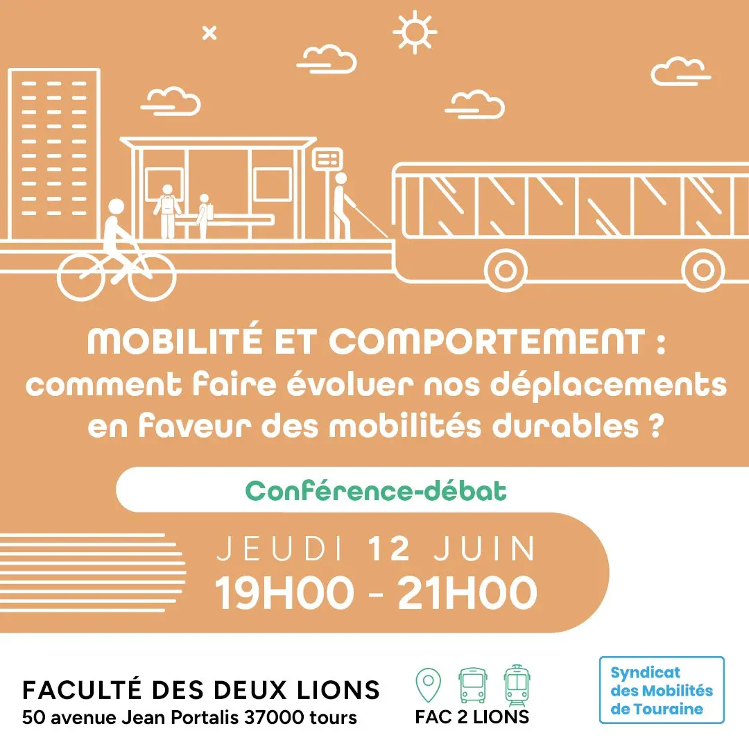 Cette rencontre se tiendra jeudi 12 juin à 19h à la Faculté des 2 Lions, 50 avenue Jean Portalis à Tours (bâtiment - B - amphithéâtre E), en présence de Stéphanie Vincent, experte des questions de mobilité et d’aménagement du territoire.