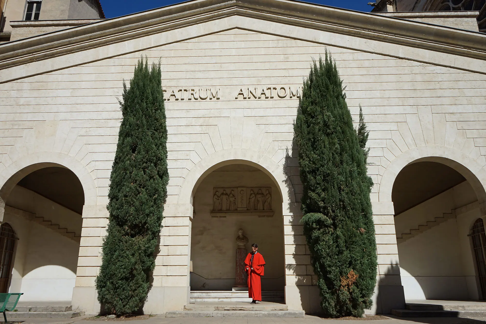 Découvrez les lieux, successivement monastère bénédictin jouxtant la cathédrale Saint-Pierre, palais épiscopal puis école de santé, à travers des salles habituellement fermées au public : Salle des Actes où sont soutenues les thèses des étudiants, vestiaire des professeurs, salle du conseil, cour d'honneur et la salle Delmas, Orfila, Rouvière présentant des pièces anatomiques issues du conservatoire de la faculté de médecine de Paris.
