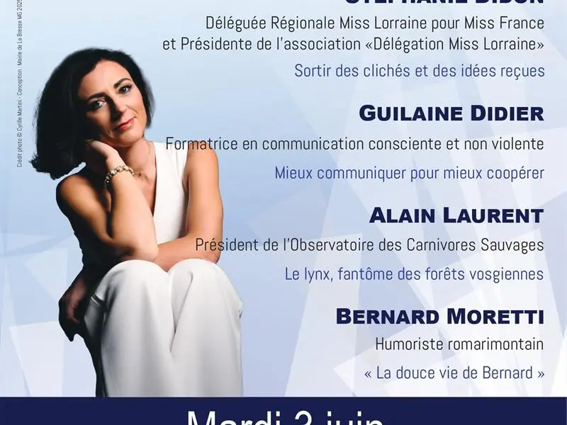 Stéphanie Didon (Déléguée Régionale Miss Lorraine pour Miss France et Présidente de l'association "Délégation Miss Lorraine") Son propos n’est pas destiné à convaincre ou faire changer d’avis sur le Monde des Miss, mais simplement de parler en toute simplicité d’une équipe de bénévoles qui œuvre avec passion pour faire vivre à des jeunes femmes de Lorraine, candidates volontaires et réunissant les critères requis, une formidable aventure humaine avec à l’issue pour l’élue, une place de rêve au concours Miss France.