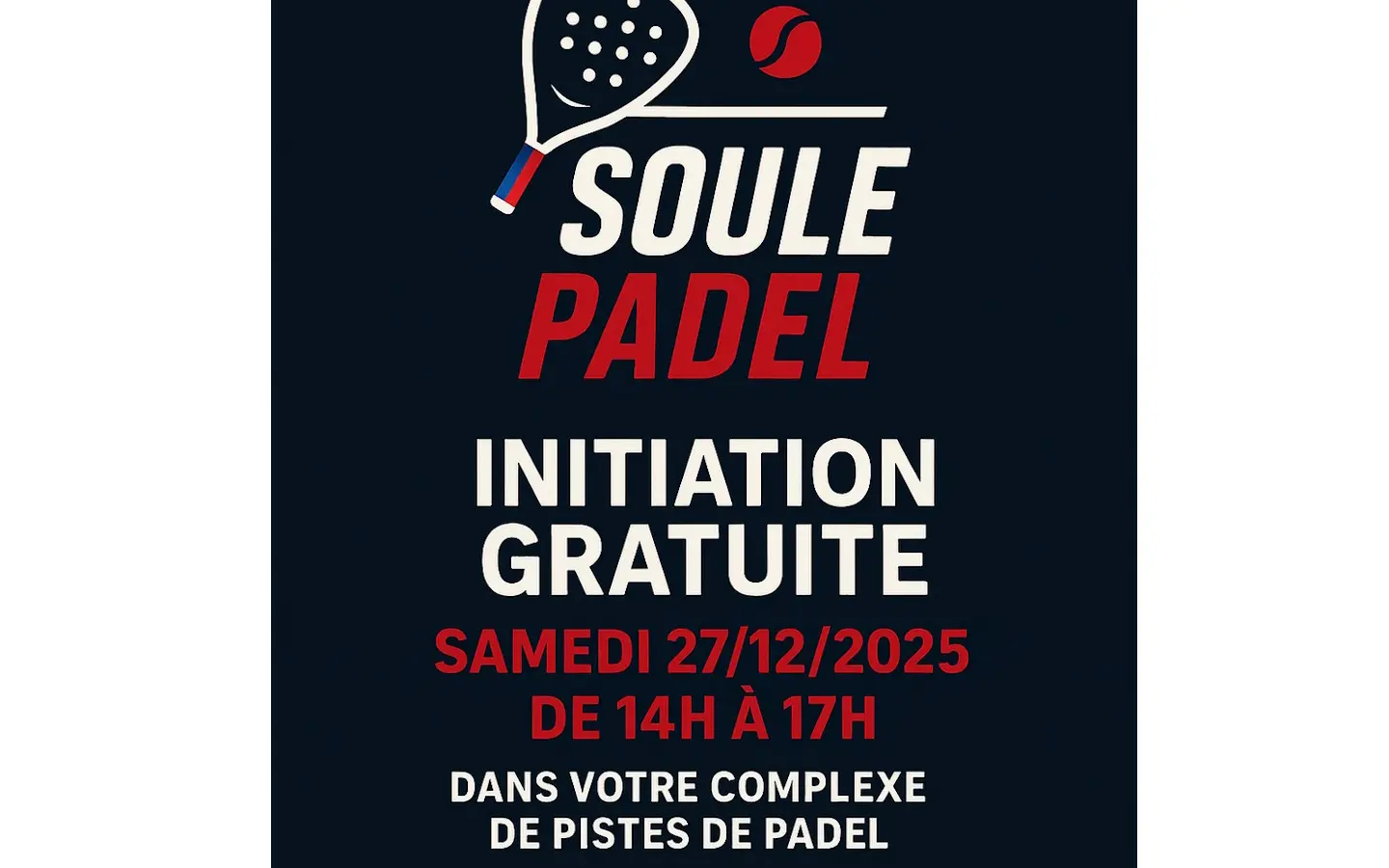 Nous vous proposons de découvrir le padel à Mauléon. Un prof de padel, spécialement booké pour l'occasion, sera présent. Si vous voulez découvrir ce sport et avoir quelques bases avant de réserver une partie, c'est le moment. Cafés et bières pour l'avant et l'après initiation vous seront proposés. Nous vous attendons le plus nombreux possible. Si vous êtes intéressé-e-s, merci de vous inscrire. Le nombre de place est limité.