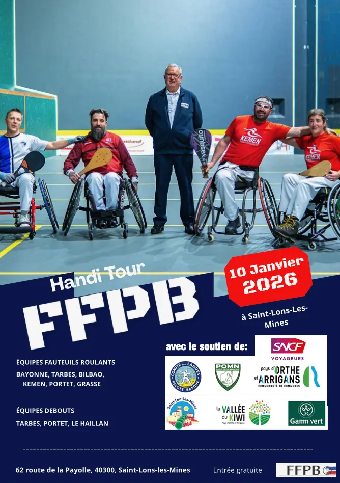 Handi tour! Équipe Fauteuils Roulants: Bayonne, Tarbes, Bilbao, Kemen, Portet, Grasse. Équipe Debout: Tarbes, Portet, Le Haillan.