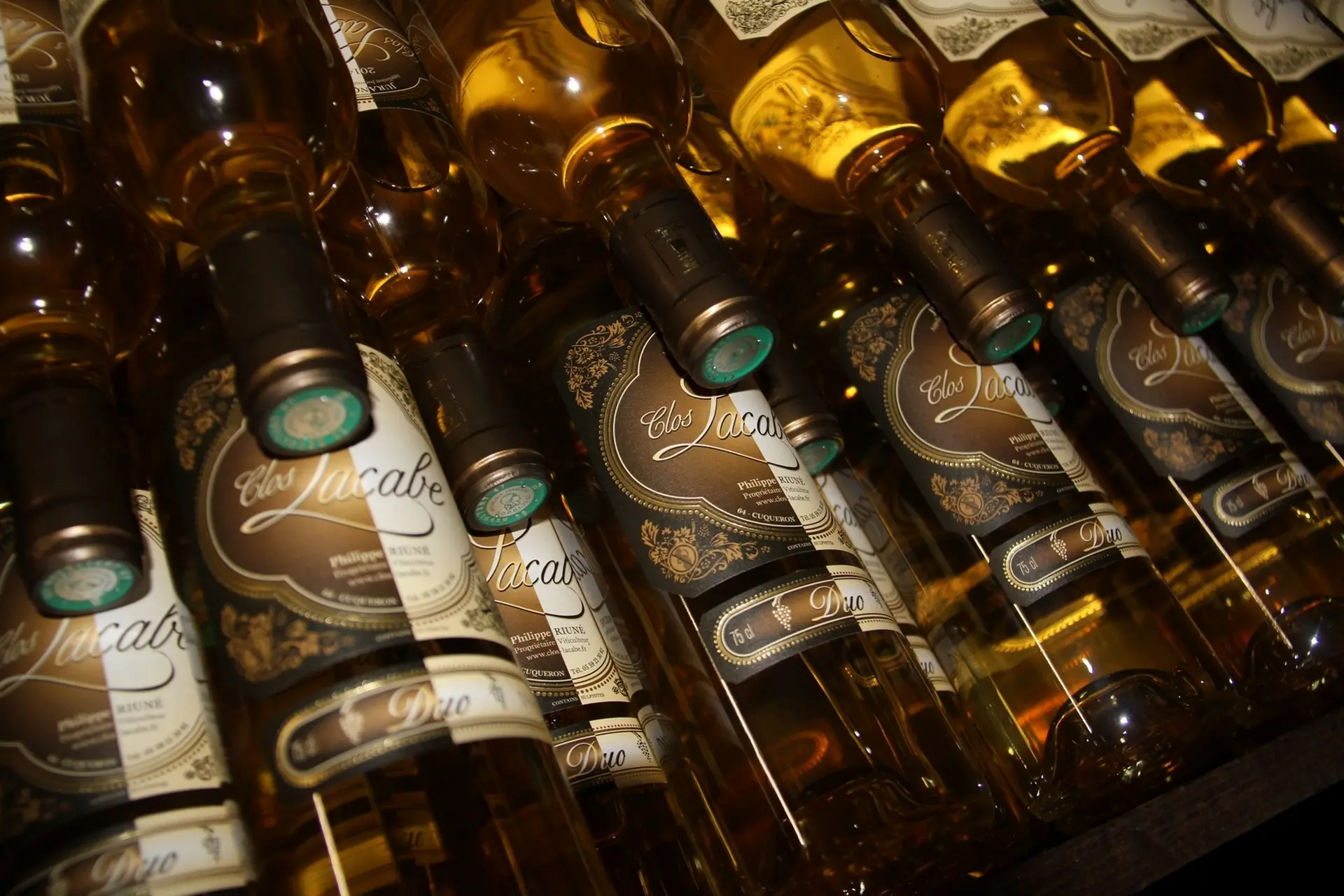 A Cuqueron, village proche de Monein sur les hauteurs des coteaux béarnais et cœur de l'AOC du vignoble du Jurançon. Le vignoble s’étend sur 5.50 hectares à flanc de coteaux face à la chaîne des Pyrénées sur un sol très volcanique composé de graves et de schistes argilo siliceux à cuirasse ferrugineuse. Son exposition sud/sud-ouest propice à une maturation optimale, aidée d’un climat tempéré, permet aux cépages Manseng et Petit Manseng de se développer dans de bonnes conditions. Grâce à la rusticité des cépages Manseng autorisant des rendements de 40hls/ha et des petits Manseng n’excédant que trop rarement les 20 hls/ha, la famille Riuné depuis plus de quatre générations a, dans le respect des traditions, élaboré de Grands Jurançons, au potentiel de vieillissement exceptionnel.