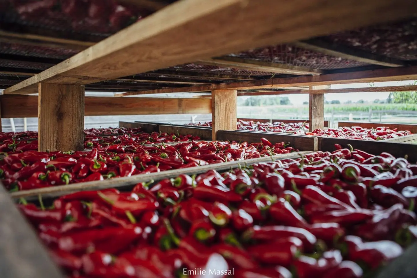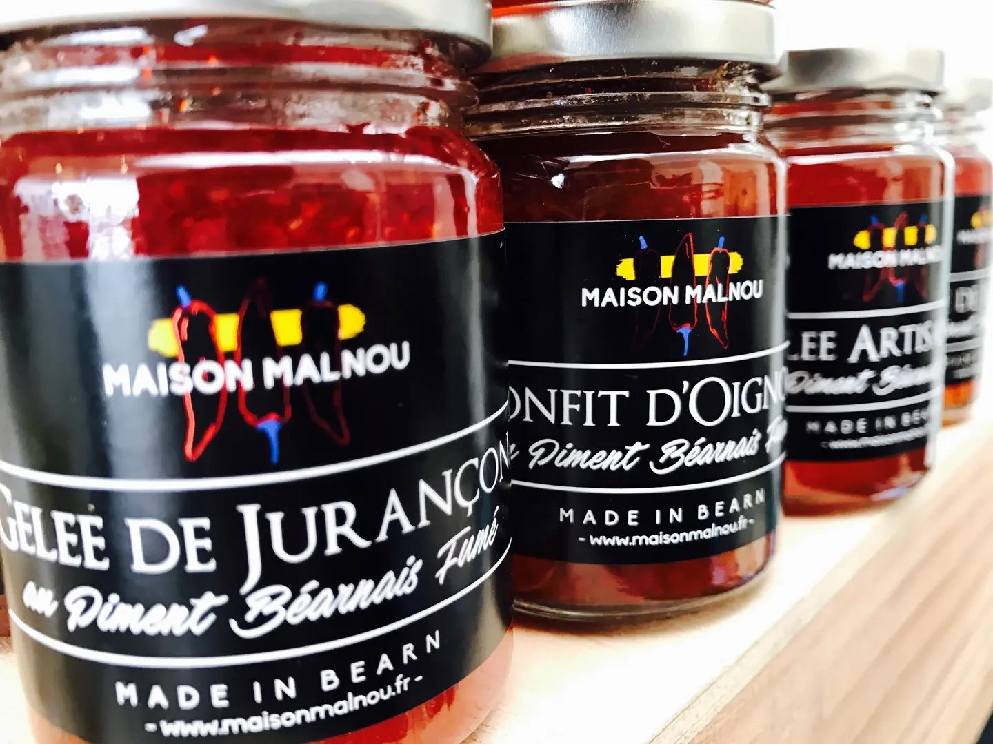 A Poey de Lescar, petit village béarnais situé à la périphérie de Pau. La Maison Malnou se trouve en bordure de l’axe principal reliant Orthez et Pau. Depuis 1872 les aïeuls de la Maison Malnou sont à la tête d’une auberge traditionnelle où ils mijotaient et assaisonnaient les spécialités locales telles que garbure et jambon au piment rouge piquant qu’ils cultivaient, travaillaient et faisaient sécher eux-mêmes. Aujourd’hui, les piments sont cultivés au milieu des vignes, vergers et autres cultures paysannes. Fumées ou non, découvrez ces petites pépites de saveurs qui s’associent aussi facilement dans une cuisine salée que sucrée. Gelées au Jurançon, confit d’oignons… autant de produits mariés au piment béarnais que vous pourrez savourer.